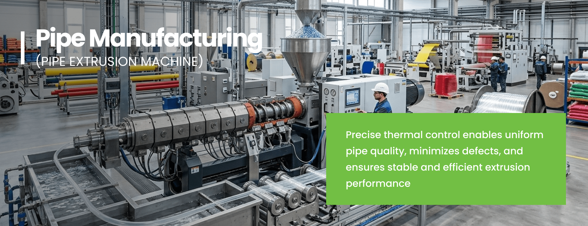 A digital PID temperature controller like the TCS4U45A0 integrated into a pipe extrusion line enables precise thermal control, uniform plasticization, and stable extrusion.