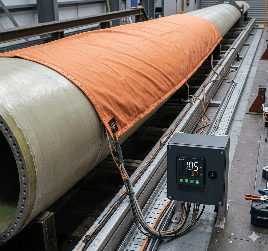 Heating blankets ensure even heat distribution, enabling proper curing even in outdoor or cold environments.